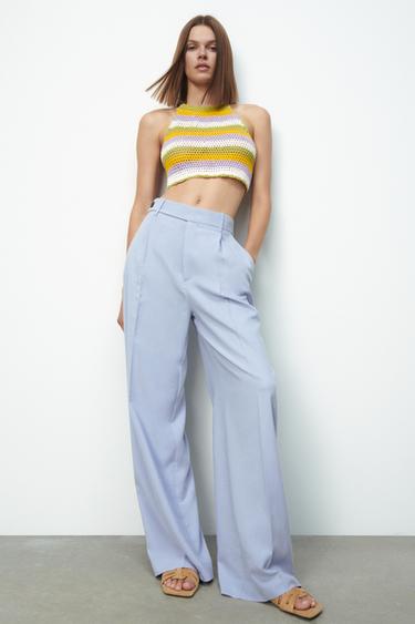 Wide Leg Menswear Style Pants Sky Blue Zara United States