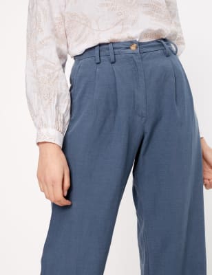 Linen Rich Wide Leg Ankle Grazer Trousers Per Una M S
